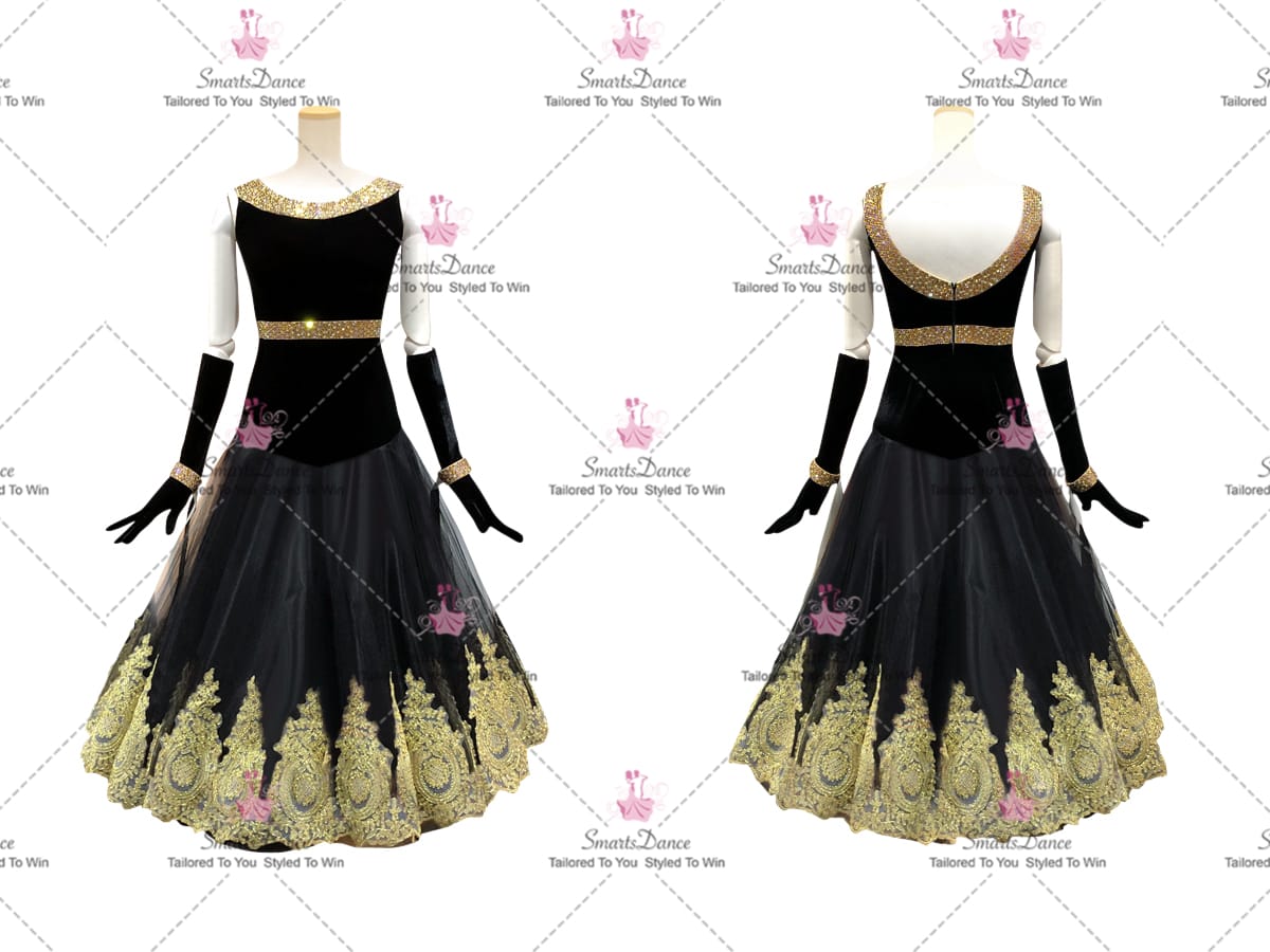 Black Swarovski Standard Ballroom Smooth Clothing Ballroom Dresses BD-SG3970