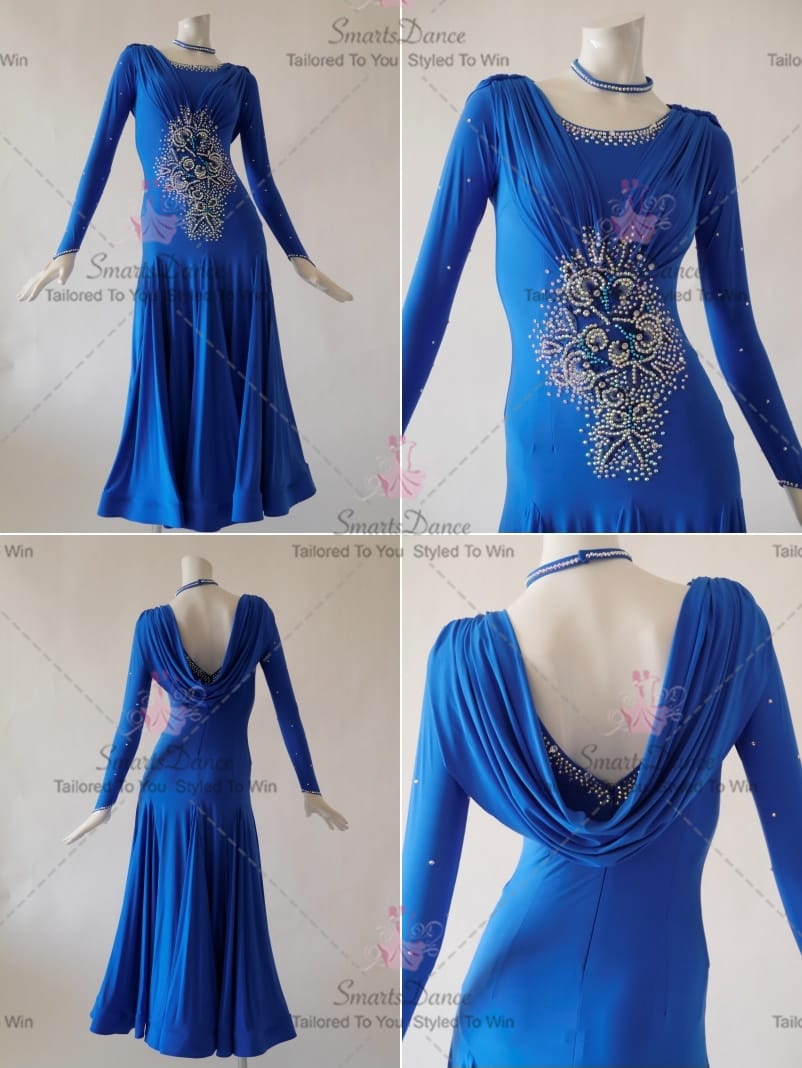 Flower Rhinestones Ballroom Dress Blue BD-SG3750