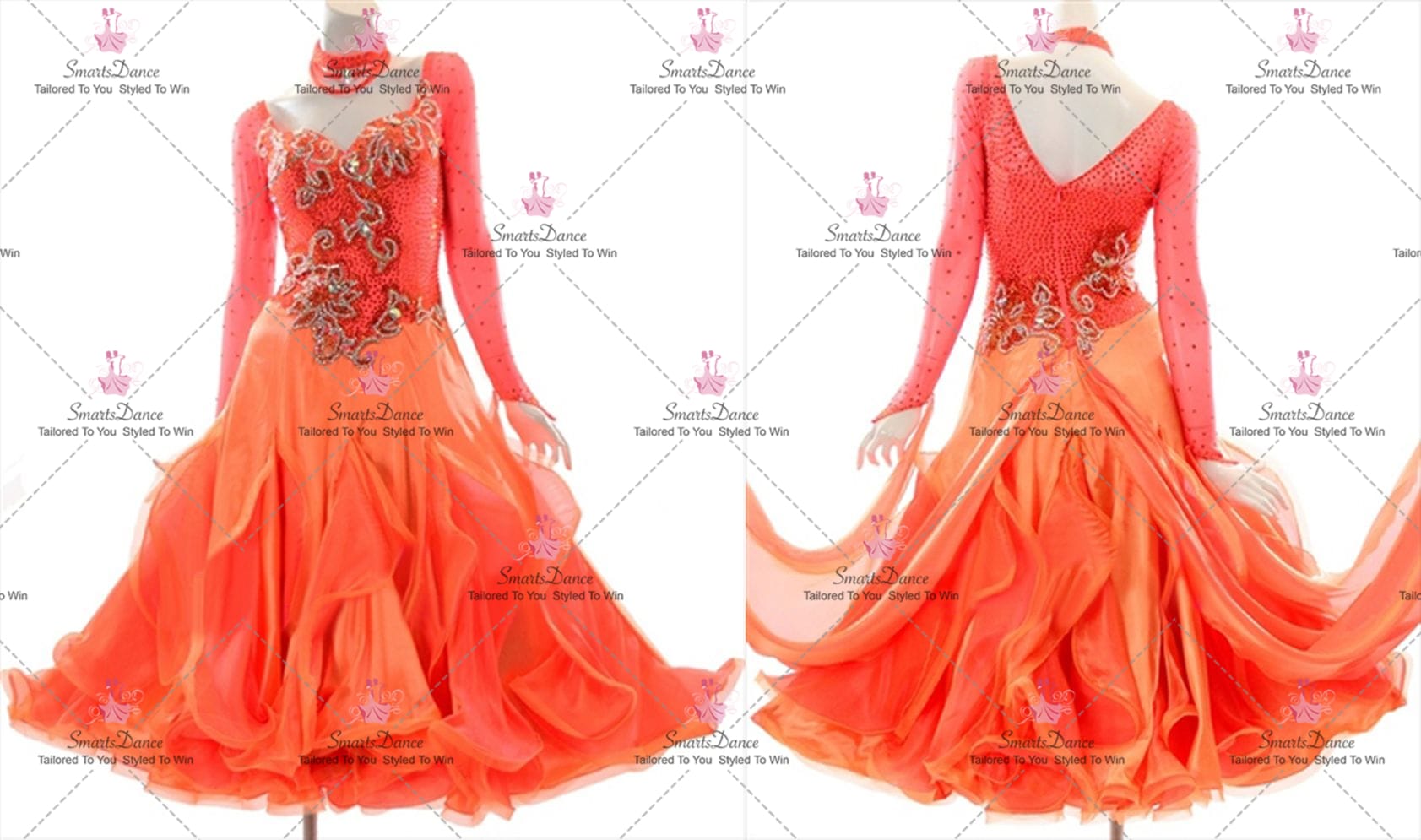 Orange Crystal Standard Ballroom Smooth Outfits Ballroom Dresses BD-SG4010