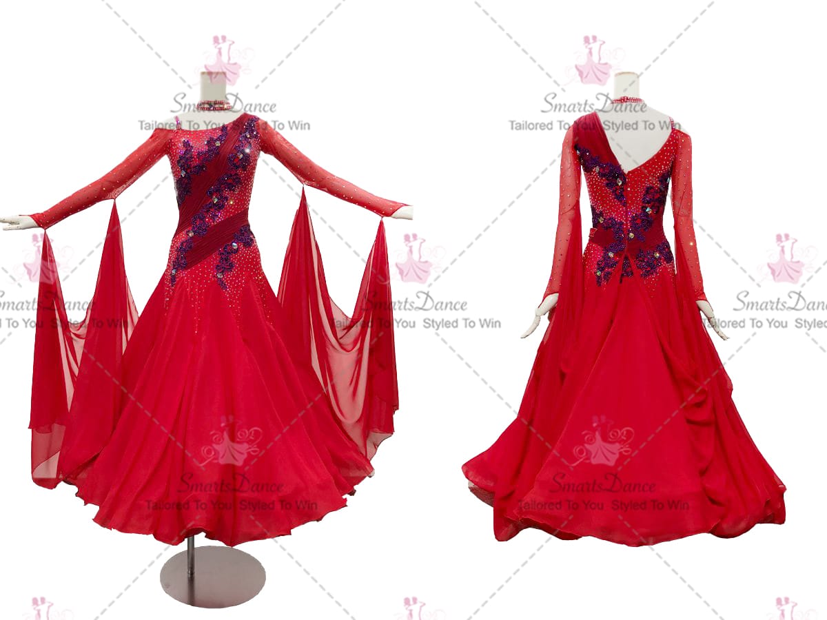 Made To Order Fashion Female Red Ballroom Smooth Gowns Standard Dance Gowns