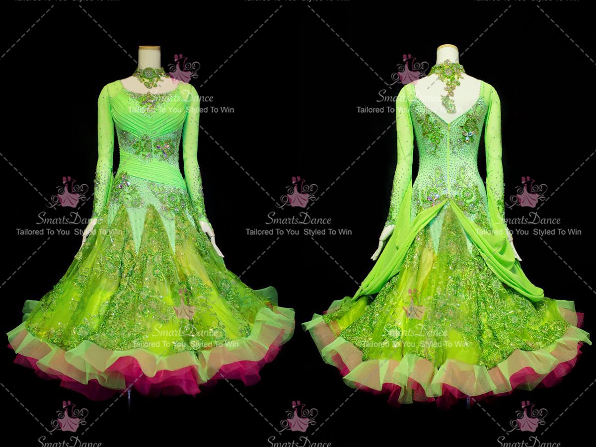 Made-To-Measure Design Juvenile Green Ballroom Gowns Smooth Dance Gowns